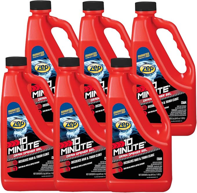 Amazon Com Zep 10 Minute Drain Opener Gel 64 Ounce Case Of 6 Zhcr64ng Commercial Strength Fast Acting And Safe For All Pipes Health Household